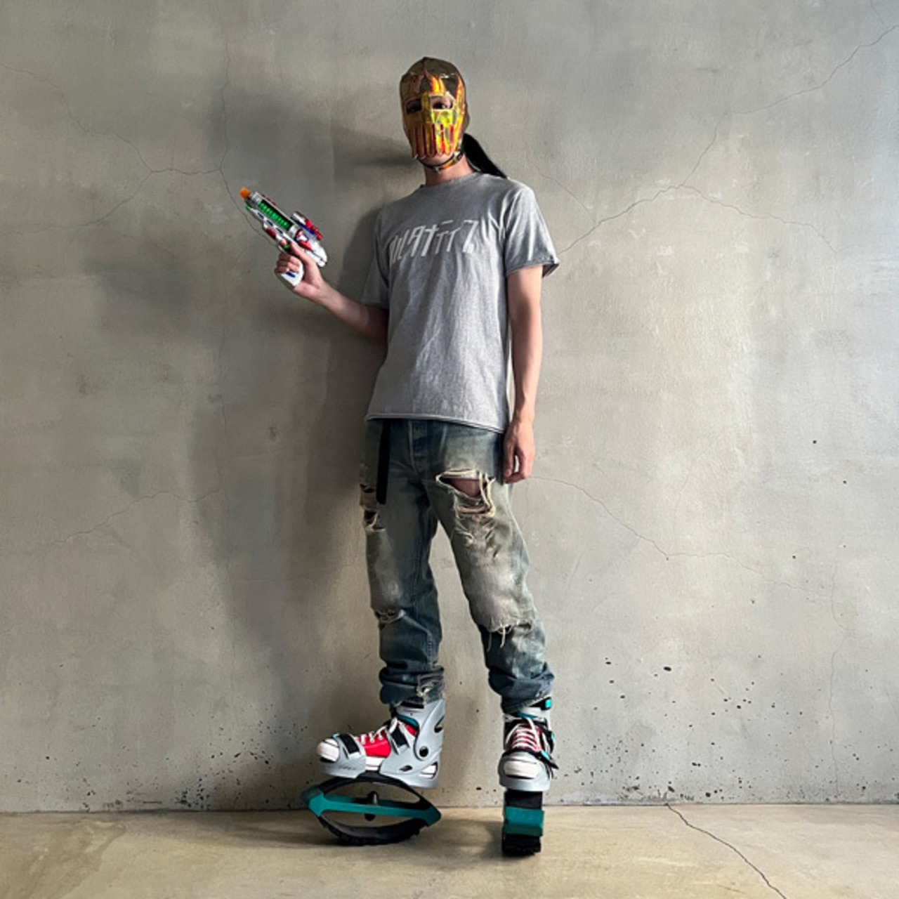 ダメージ加工 蓄光プリント オルタナティブ T-shirt(ダメージ加工蓄光プリントALTARNATIVE Tシャツ)BLACK
